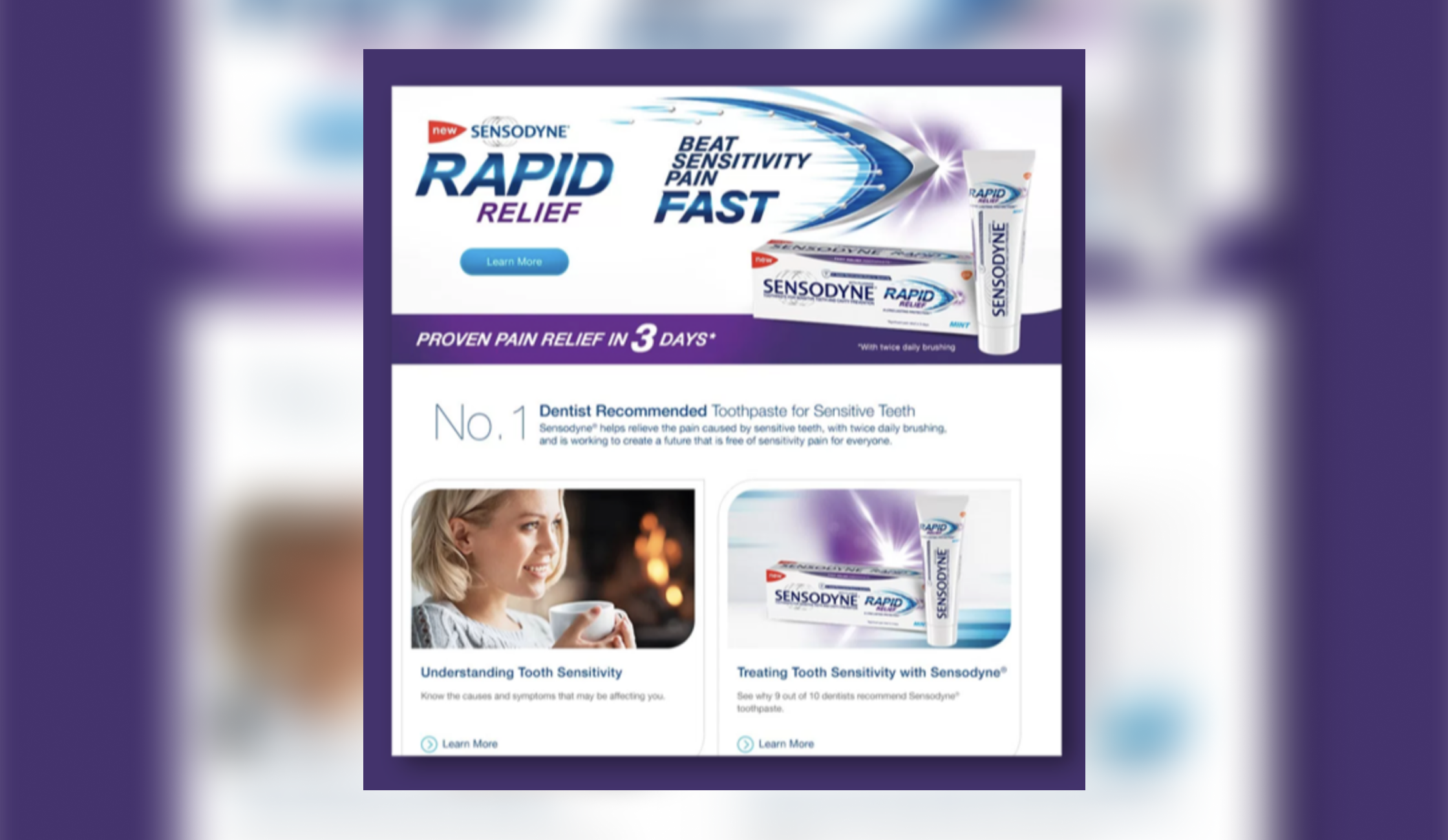 Responsive layouts optimized for on-the-go research and purchasing decisions. Positions Sensodyne as oral health authority beyond just sensitivity.